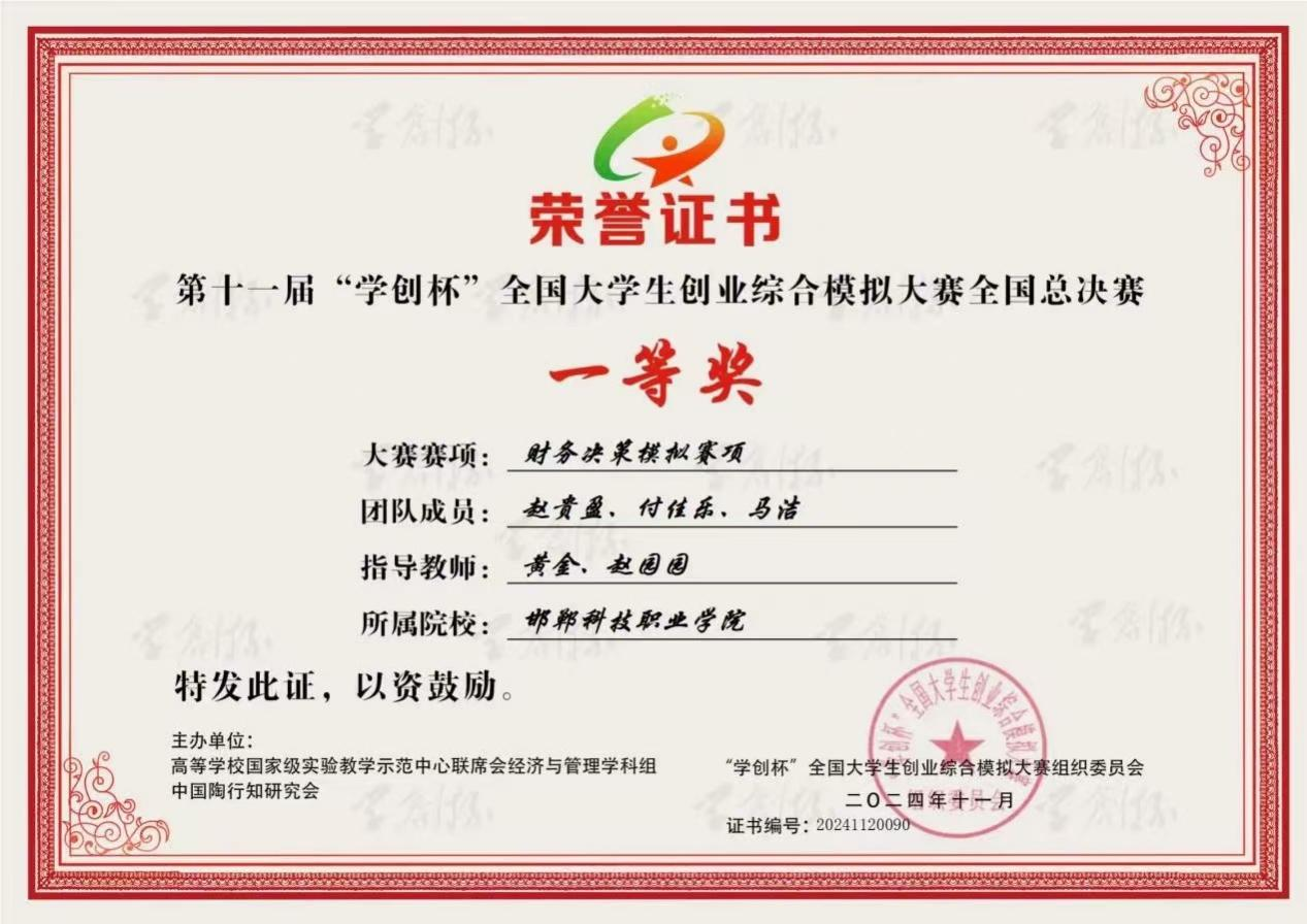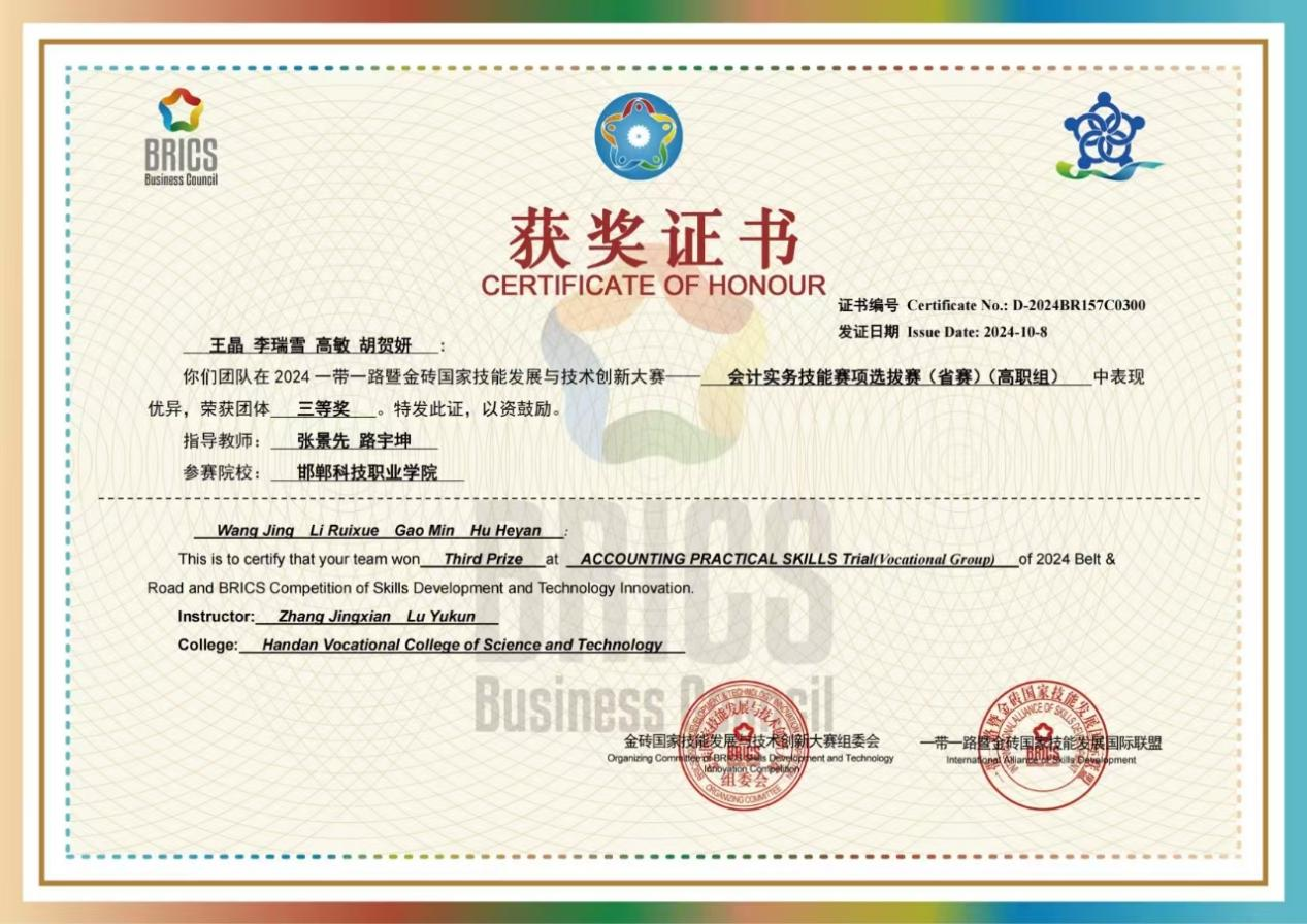 涵盖财务流程自动化、数据分析报告及系统操作熟练度等。学生获得财务模拟决策河北省一等奖。