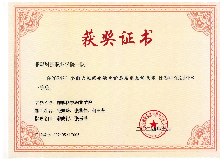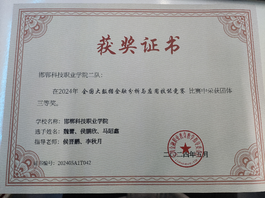 通过实训学生掌握了数据处理技能,提升财务分析能力,提升了学生创新思维与团队协作能力,实现理论与实践的深度融合,学生在全国金融大数据投资分析比赛中获得一等奖。