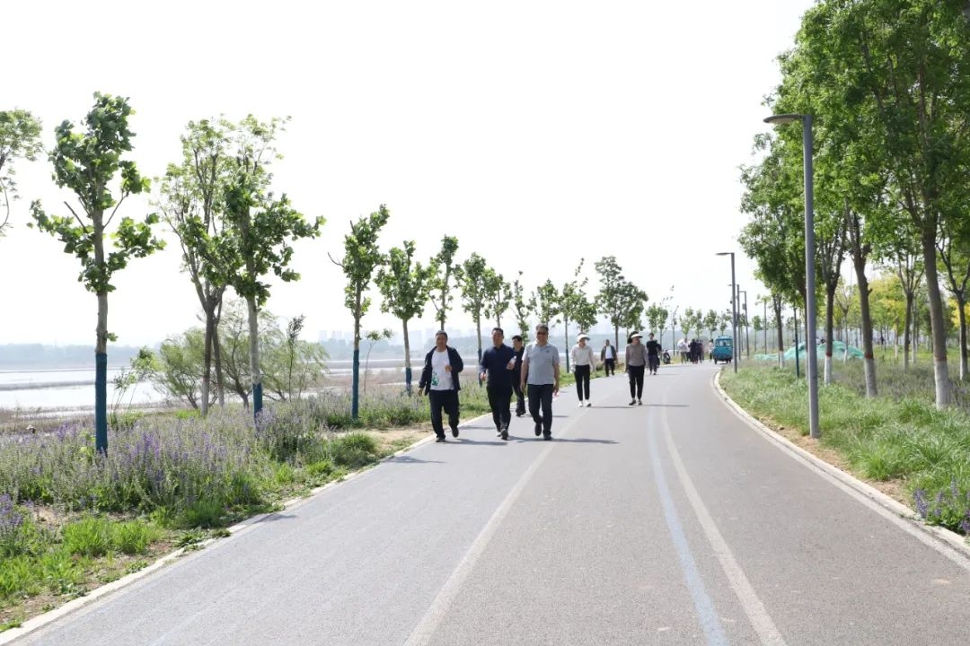 沿途风景如画,花草繁盛。教职工三两成群,结伴而行,一边漫步,一边分享着近期的工作心得与生活趣事;有的则拿出手机,捕捉美丽的自然景色;还有的快步前行,尽情享受运动带来的快乐。一路上,大家相互鼓励、相互陪伴,欢声笑语回荡在公园的每一个角落。