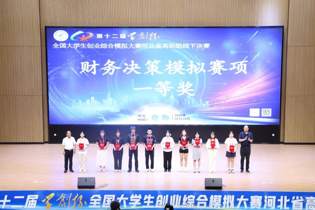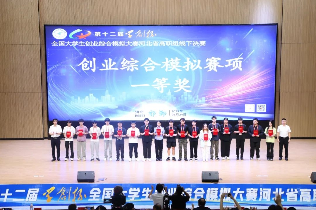 6月24日下午,第十二届“学创杯”全国大学生创业综合模拟大赛河北省高职组线下决赛在邯郸科技职业学院闭幕! 出席第十二届“学创杯”全国大学生创业综合模拟大赛河北省高职组线下决赛闭幕式并为获奖选手颁奖的有邯郸冀南新区管委会主任、邯郸科技职业学院党委书记杨万春,邯郸科技职业学院党委副书记、院长李鹏丽,邯郸市教育局副局长季卫东,邯郸冀南新区党工委副书记王富魁,邯郸市教育局高职科科长佘在勇,邯郸中关村信息谷科技服务有限公司总经理李宪国,杭州贝腾科技有限公司京冀区域总监张红莉,邯郸科技职业学院领导班子成员。