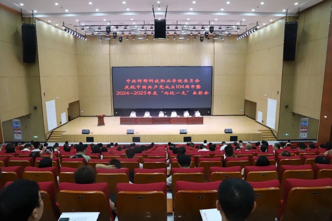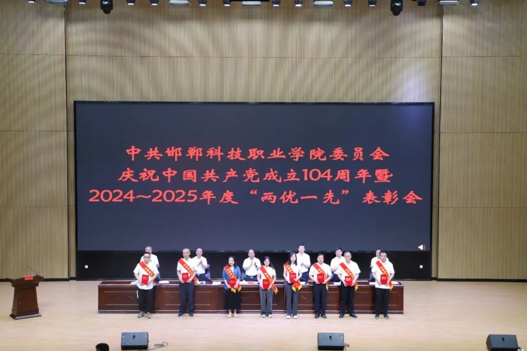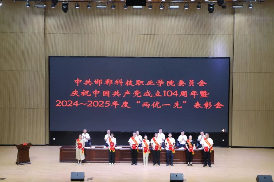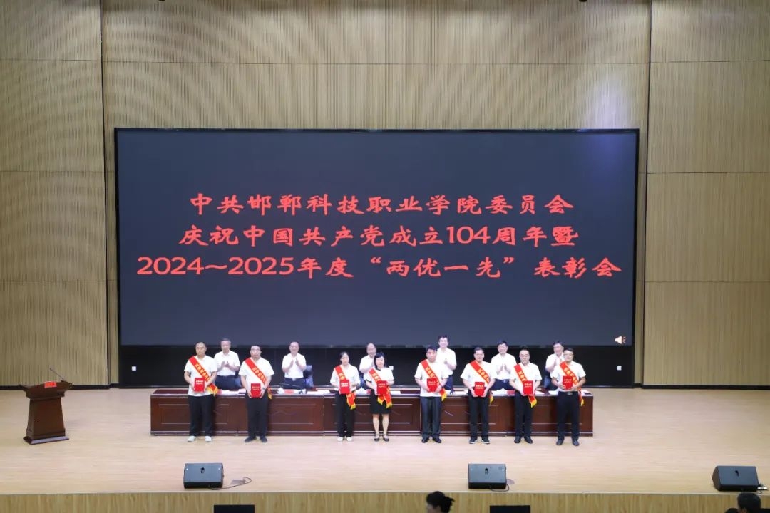 为表彰先进典型、凝聚奋进力量,激励全院各级党组织和党员在高质量发展新征程中担当作为,6月25日,邯郸科技职业学院在邯郸职教城国际学术交流中心二楼报告厅隆重召开庆祝中国共产党成立104周年暨“两优一先”表彰会。会议对2024-2025年度52名优秀共产党员、17名优秀党务工作者和3个先进党支部进行集中表彰。学院党委书记杨万春出席并讲话,党委副书记、院长李鹏丽主持,党委领导班子成员出席。