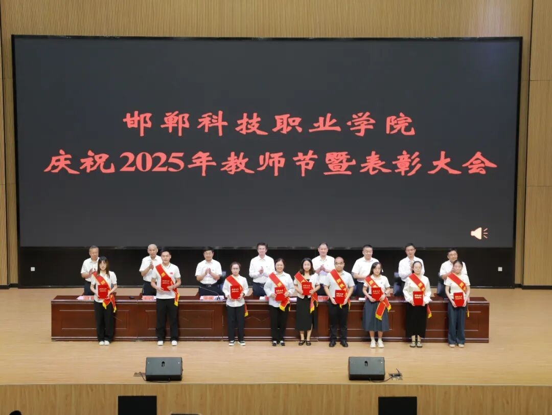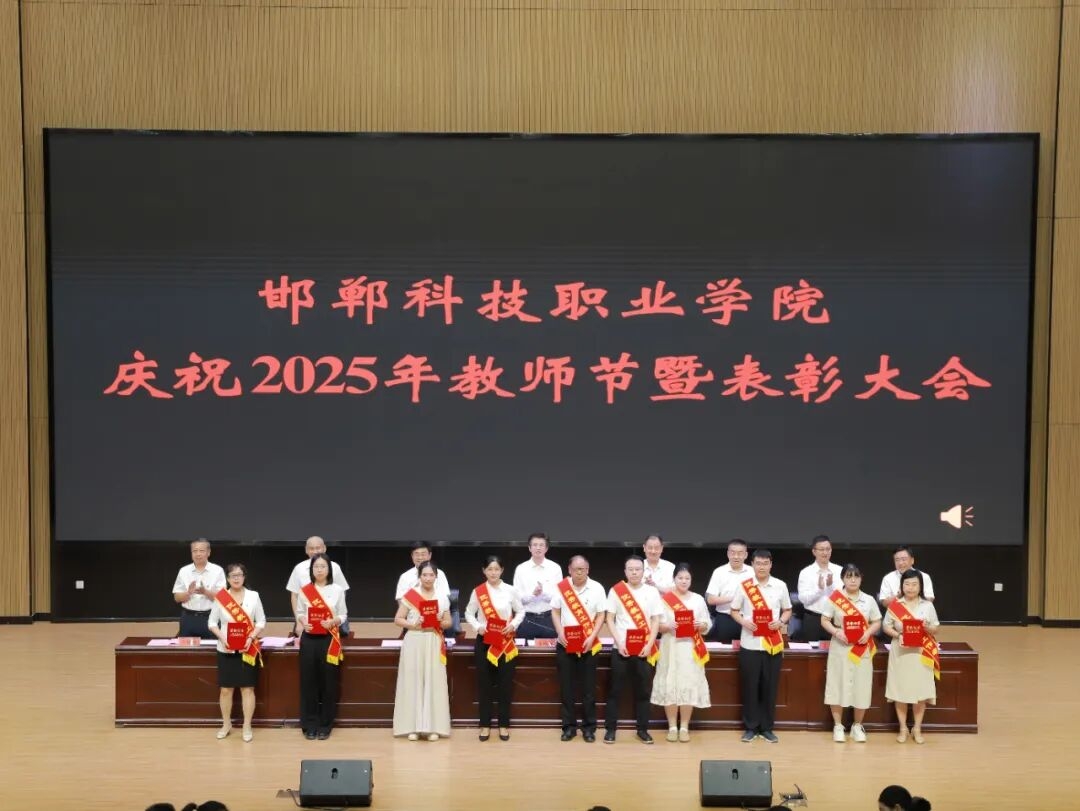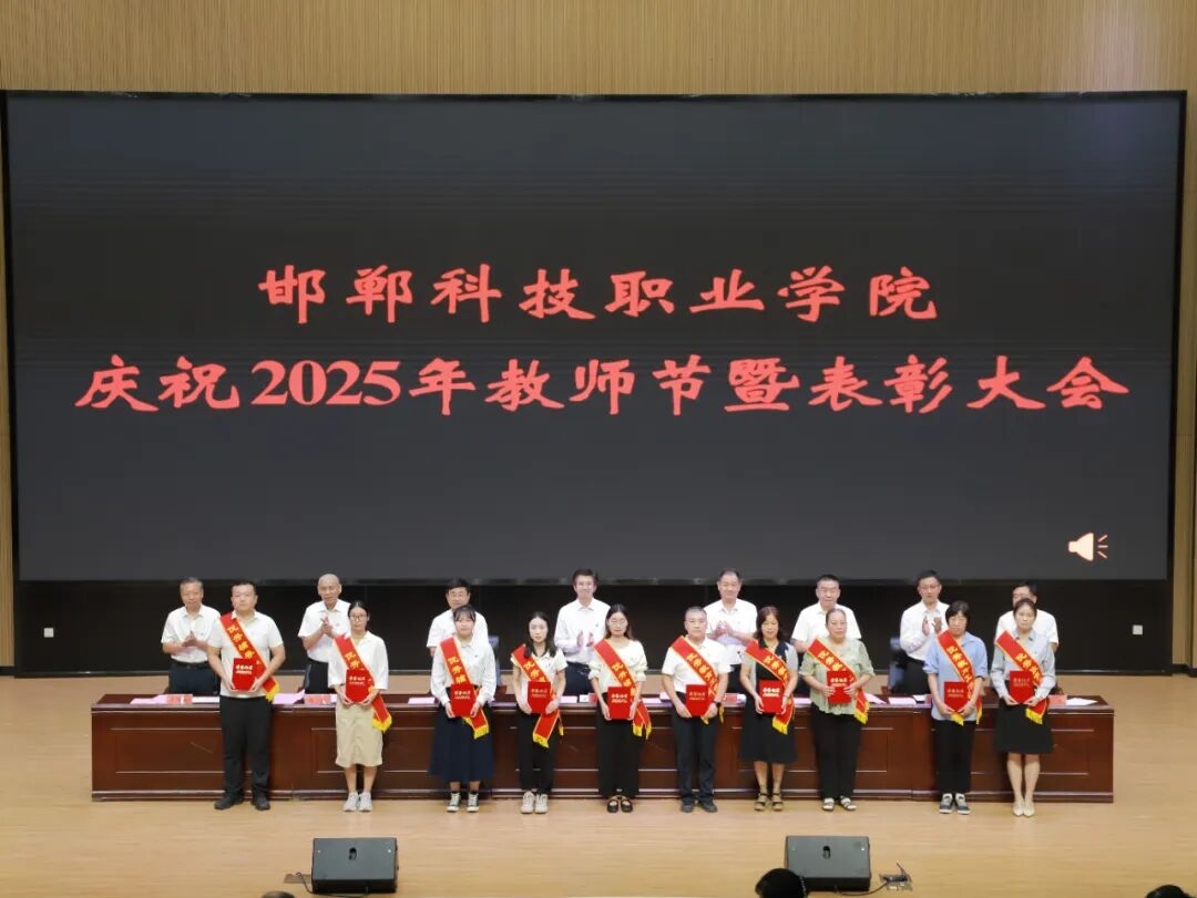 9月10日,邯郸科技职业学院庆祝2025年教师节暨表彰大会在邯郸职教城国际学术交流中心一楼报告厅举行。大会以“以教育家精神铸魂强师 谱写教育强国建设华章”为主题,集中展现学院教师队伍立德树人、奋发有为精神风貌,弘扬尊师重教传统,凝聚育人育才力量。学院党委副书记、院长李鹏丽出席并讲话,党委委员、副书记刘陆冰主持,党委领导班子成员出席大会。