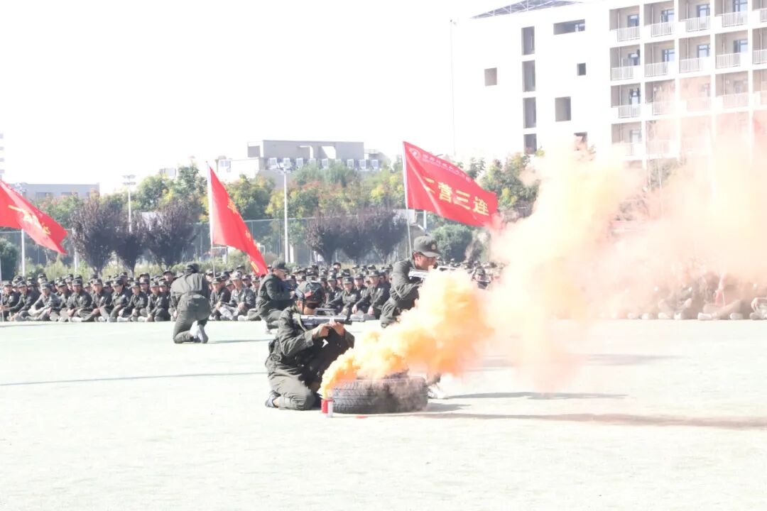 在新生军训特色科目展示环节,各方阵先后表演了匕首操、刺杀操、战略战术及战伤救护等科目,同学们出拳刚劲利落、踢腿凌厉迅猛,每一个动作都精准到位、气势十足,赢得现场师生的一致好评。