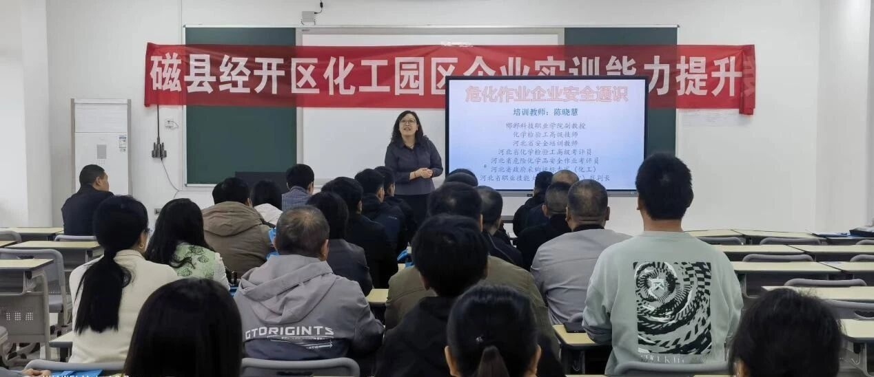 为深入贯彻落实国家关于“深化产教融合、增强职业教育适应性”决策部署,服务区域经济高质量发展,10月15日,邯郸科技职业学院在安全培训中心开展“磁县经开区化工园区企业实训能力提升培训”,培训聚焦化工产业安全发展与技能人才队伍建设,旨在通过校企协同、精准施训,为区域化工产业注入新动能。