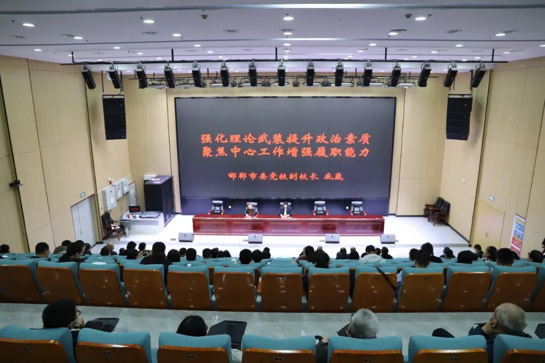 邯郸科技职业学院第54期周末专家行在邯郸职教城国际学术交流中心一楼报告厅举行,市委党校副校长、市行政学院副院长底崴作“强化理论武装提升政治素质,聚焦中心工作增强履职能力”专题讲座,学院党委副书记、院长李鹏丽主持。 李鹏丽说,在学院全面深化教育教学改革、推进高质量发展的重要阶段,加强理论武装、提升政治能力尤为迫切。他说,全体干部要深刻把握马克思主义中国化时代化的最新成果,将其转化为指导实践、推动工作的强大动力,以理论清醒保障政治坚定,以思想引领促进业务提升。 底崴以深厚理论功底和丰富实践经验系统梳理了马克思主义中国化的发展历程,深刻阐释了党的创新理论的精髓要义,并结合高职教育特点和地方发展实际,生动解读了理论如何指导实践、党建如何引领业务。整场讲座内容翔实、逻辑严密、语言生动,既有历史纵深感,又有现实针对性,为参训干部带来了一场思想深刻、启迪智慧的理论盛宴。 授课后,李鹏丽说,干部要在理论武装上持续深化,自觉用党的创新理论武装头脑、指导实践,不断提升政治能力和理论素养。要在融合实践上主动作为,把党建工作的要求融入部门业务全过程,以高质量党建引领高质量发展。要在育人实效上彰显担当,将马克思主义中国化的思想精髓融入教育教学,培养更多德技并修的高素质技术技能人才。 此次培训既是一次系统的理论辅导,也是一次深入的思想动员。干部纷纷表示,将以此次学习为新的起点,进一步强化融合意识、提升履职能力,切实把学习成效转化为推动学院事业发展的实际行动,为建成“业内认可、地方离不开、出去能交流”的高水平高职院校注入强劲红色动能! 学院党委委员、中层干部和党务干部参加培训。