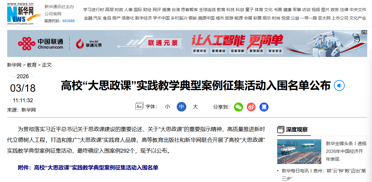 近日,高校“大思政课”实践教学典型案例征集活动结果公布,学院党委副书记、院长李鹏丽与学院党委副书记刘陆冰指导并组织申报的实践教学案例《红流润土打造“育苗”新生态》,从全国多所高校报送案例中脱颖而出,成功入选292项全国典型案例,标志着学院在探索具有地方特色的高校“大思政课”建设方面取得突破性进展,初步形成具有一定影响力的育人品牌。