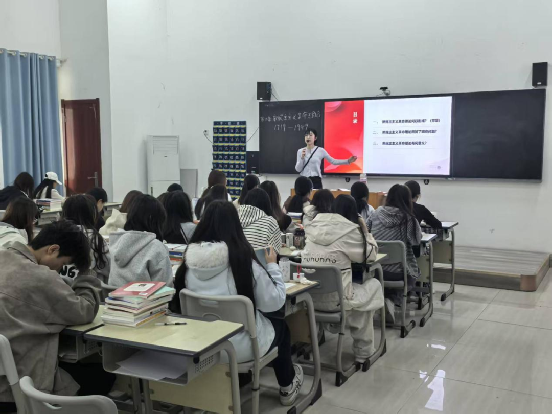 冯少珍老师从“新民主主义革命理论有何意义?”一问出发,通过帮助学生回顾之前学习要点,引导学生对新民主主义革命理论的理论意义、实践意义及世界意义进行归纳总结,明确让其知悉新民主主义革命理论的划时代价值。张路路老师围绕“夯实基础 全面发力——乘势而上、接续推进中国式现代化”主题进行深入浅出地讲授。她从“十五五”规划应当遵循的“六大坚持”重大原则和7个方面的主要目标出发,解释了分领域部署对推进中国式现代化具有的重大牵引、驱动、支撑作用的战略任务和重大举措,使学生增强了实现社会主义现代化取得决定性进展的信心。肖娜老师以“新民主主义革命的形成背景”为主要教学内容,通过视频赏析、对比分析、课堂提问、总结提升,帮助学生理清新民主主义革命与旧民主主义革命之间的区别与联系,进而弄懂新民主主义革命的总路线中所包含的革命对象、动力等问题。