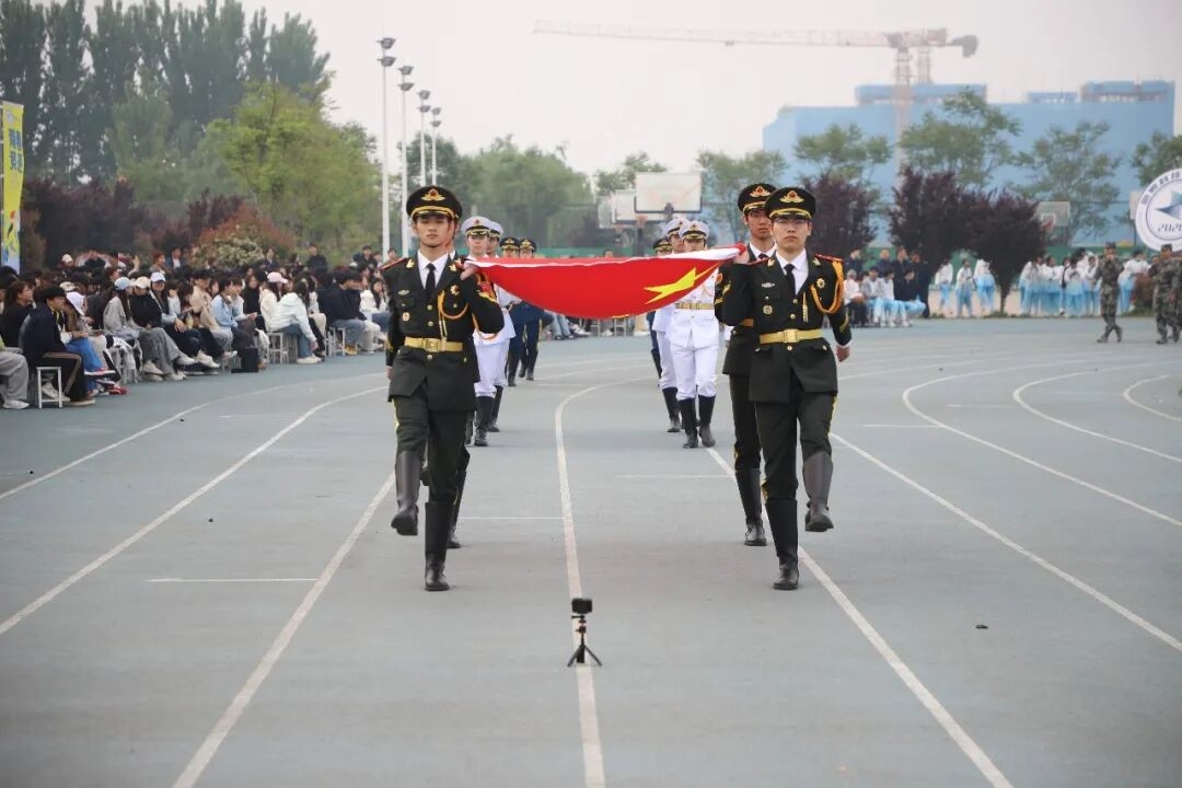 随着铿锵有力的《运动员进行曲》,国旗护卫队迈着整齐划一的步伐,护卫五星红旗庄严入场。鲜艳的国旗迎着朝阳冉冉升起,全体师生肃立致敬,齐唱国歌。那一刻,信仰与力量在每个人心中升腾。