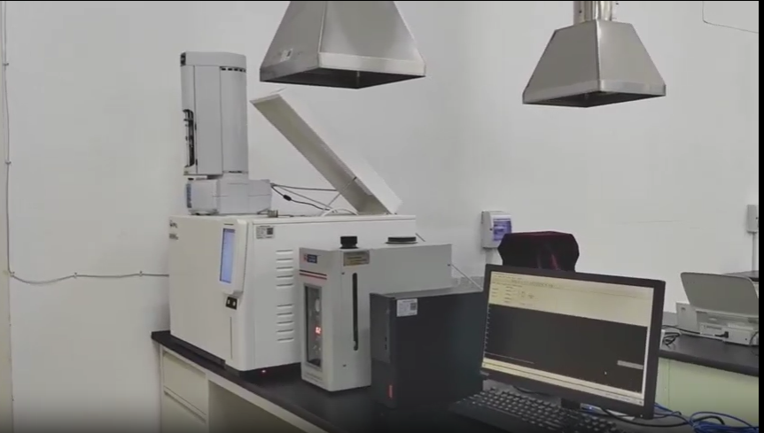 首先我们看到的是原子吸收光谱仪,它是根据物质基态原子蒸汽对特征辐射吸收的作用来进行金属元素分析,该仪器由光源系统、原子化系统、分光系统、检测系统及数据处理系统组成,设备预热后,需要进行一些列条件设置,如设置待测金属元素、波长、能量、待测样品数量等,打开空压机和乙炔钢瓶,点火,仪器进入测量状态,然后依次将样品通过原子化系统进样,配合计算机控制系统可进行测量,直接得出溶液中待测金属的浓度,具有快速、准确、灵敏的优点。可分析水质、土壤等环境要素中70多种微量或痕量金属元素,在环境检测、化学化工等行业得到广泛应用。