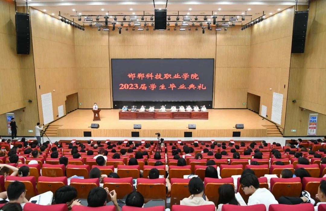 6月26日上午,邯郸科技职业学院首届毕业典礼在邯郸职教城国际学术交流中心二楼报告厅隆重举行,并进行毕业生文艺汇演。党委书记杨万春出席并讲话,党委副书记、院长李鹏丽主持,学院领导班子成员参加活动。
