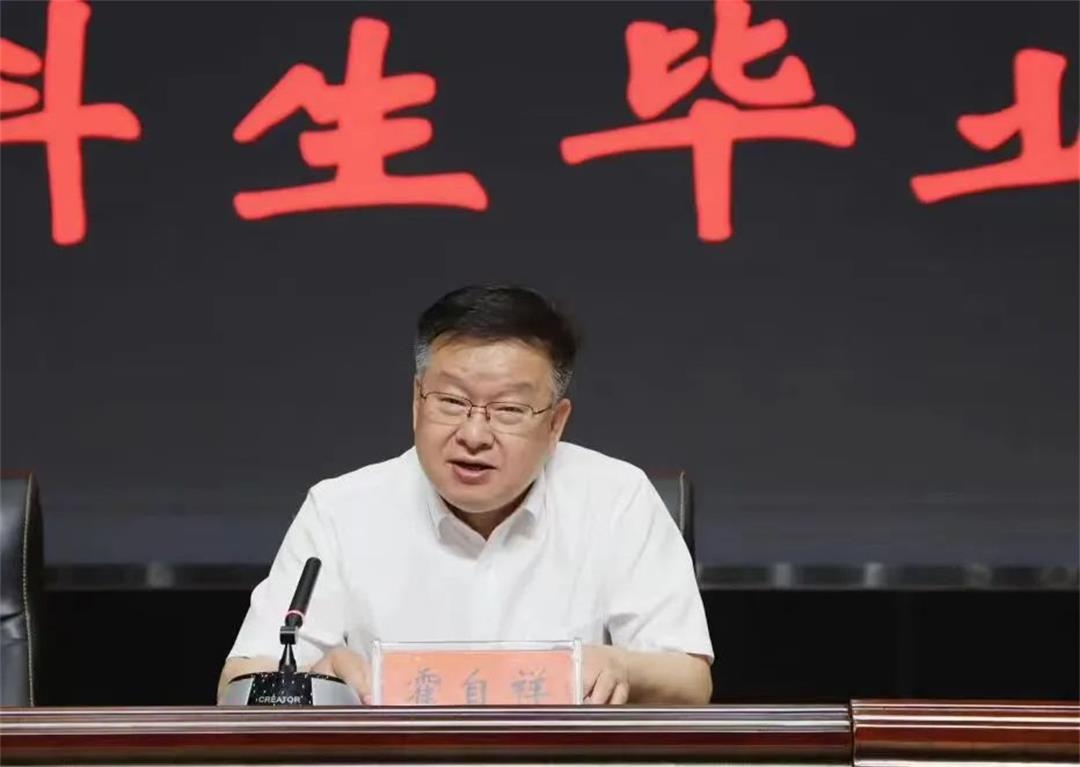 邯郸科技职业学院党委专职副书记霍自祥宣读《邯郸科技职业学院关于准予2023届1035名专科生毕业的决定》。