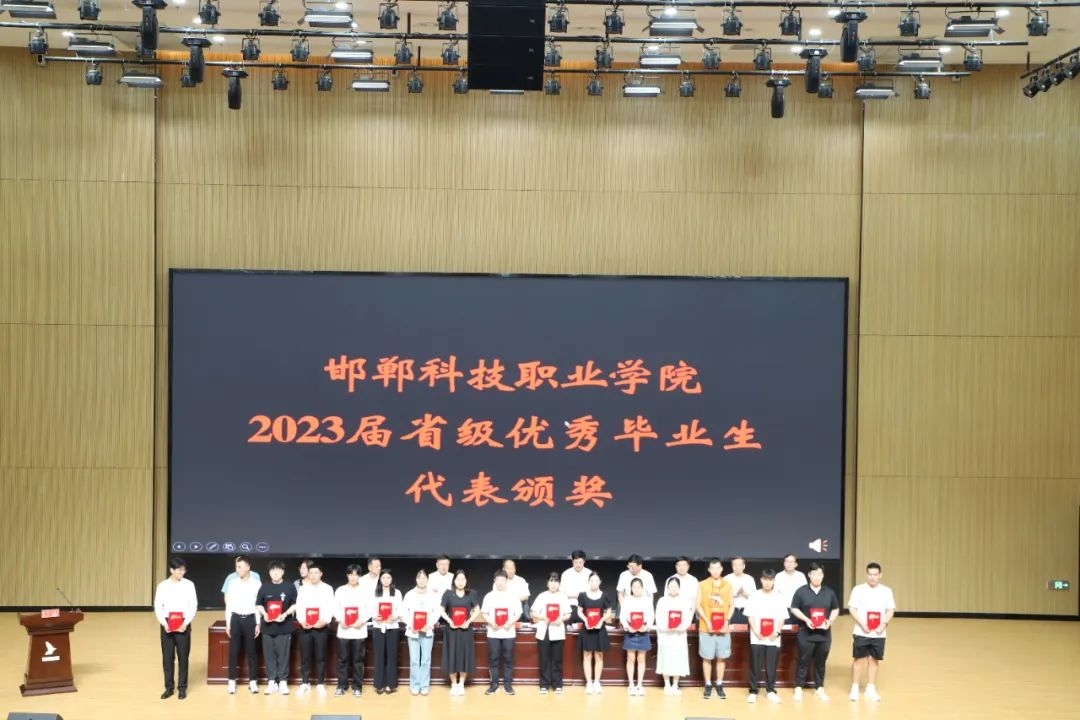 邯郸科技职业学院党委委员于保国宣读学院2023届河北省优秀毕业生名单。