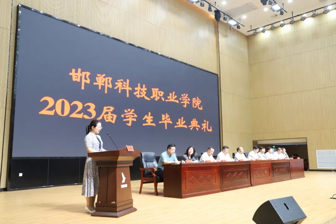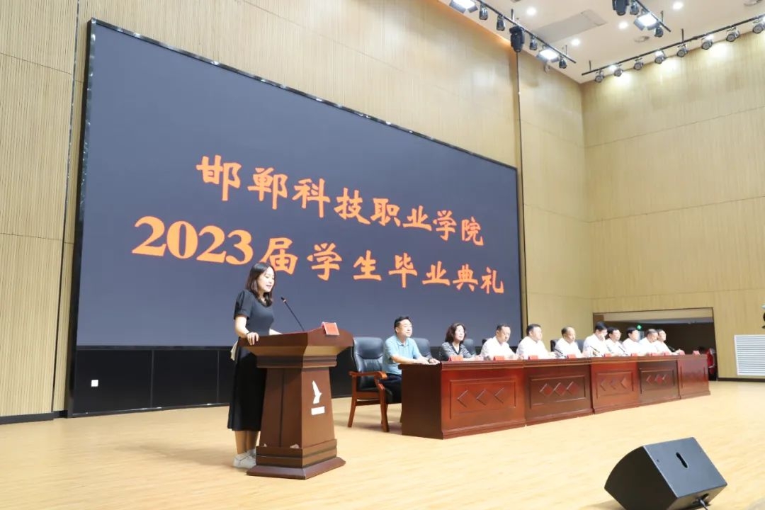 李鹏丽在主持毕业典礼时说,今天是每一位毕业生翘首以待的日子,也是学院最盛大的节日,而更为特别的是,同学们是邯郸科技职业学院首届毕业生,希望大家永远珍藏大学生活的难忘时光,珍惜彼此结下的深情厚谊,用青春的激情、执着的信念、过硬的本领开创更加绚丽的人生。他勉励大家将“博学、审问、慎思、明辨、笃行”的校训铭记在心,付诸行动,坚持终身学习、保持求知欲,开拓思维、拓展视野,在新的人生道路上直面挑战、勇担使命,把握未来、砥砺奋进!