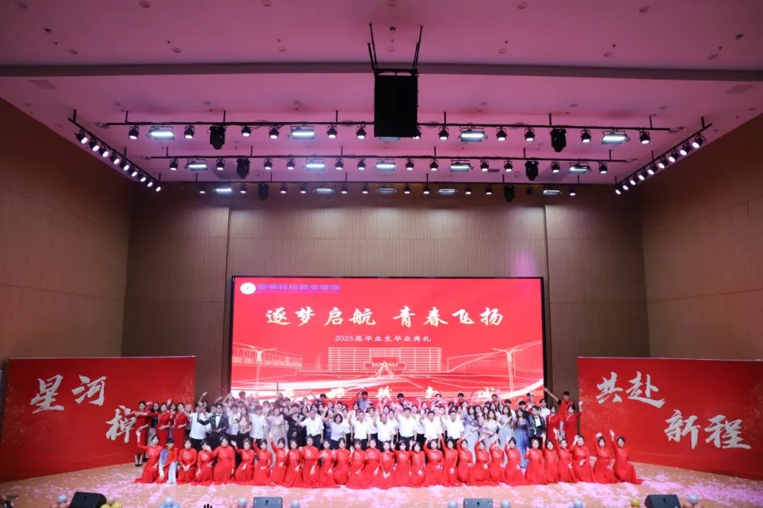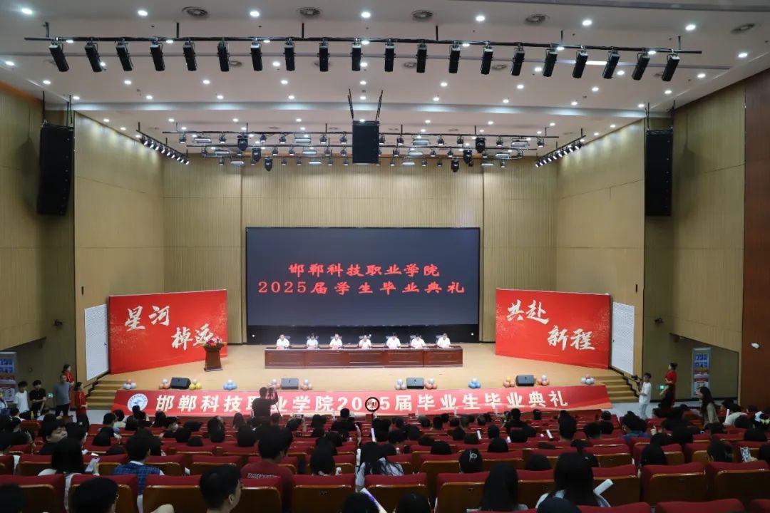 6月20日上午,邯郸科技职业学院2025届学生毕业典礼在职教城国际学术交流中心二楼报告厅隆重举行,并进行毕业生文艺汇演。学院党委书记杨万春出席并讲话,学院党委副书记、院长李鹏丽主持,学院领导班子成员出席。