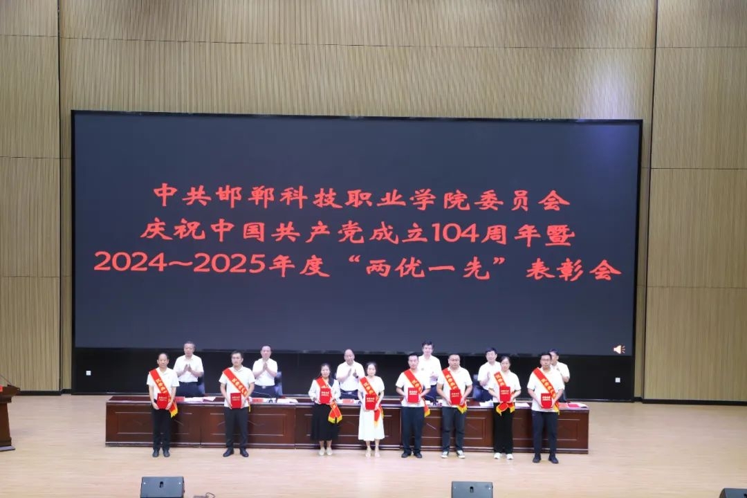 为表彰先进典型、凝聚奋进力量,激励全院各级党组织和党员在高质量发展新征程中担当作为,6月25日,邯郸科技职业学院在邯郸职教城国际学术交流中心二楼报告厅隆重召开庆祝中国共产党成立104周年暨“两优一先”表彰会。会议对2024-2025年度52名优秀共产党员、17名优秀党务工作者和3个先进党支部进行集中表彰。学院党委书记杨万春出席并讲话,党委副书记、院长李鹏丽主持,党委领导班子成员出席。