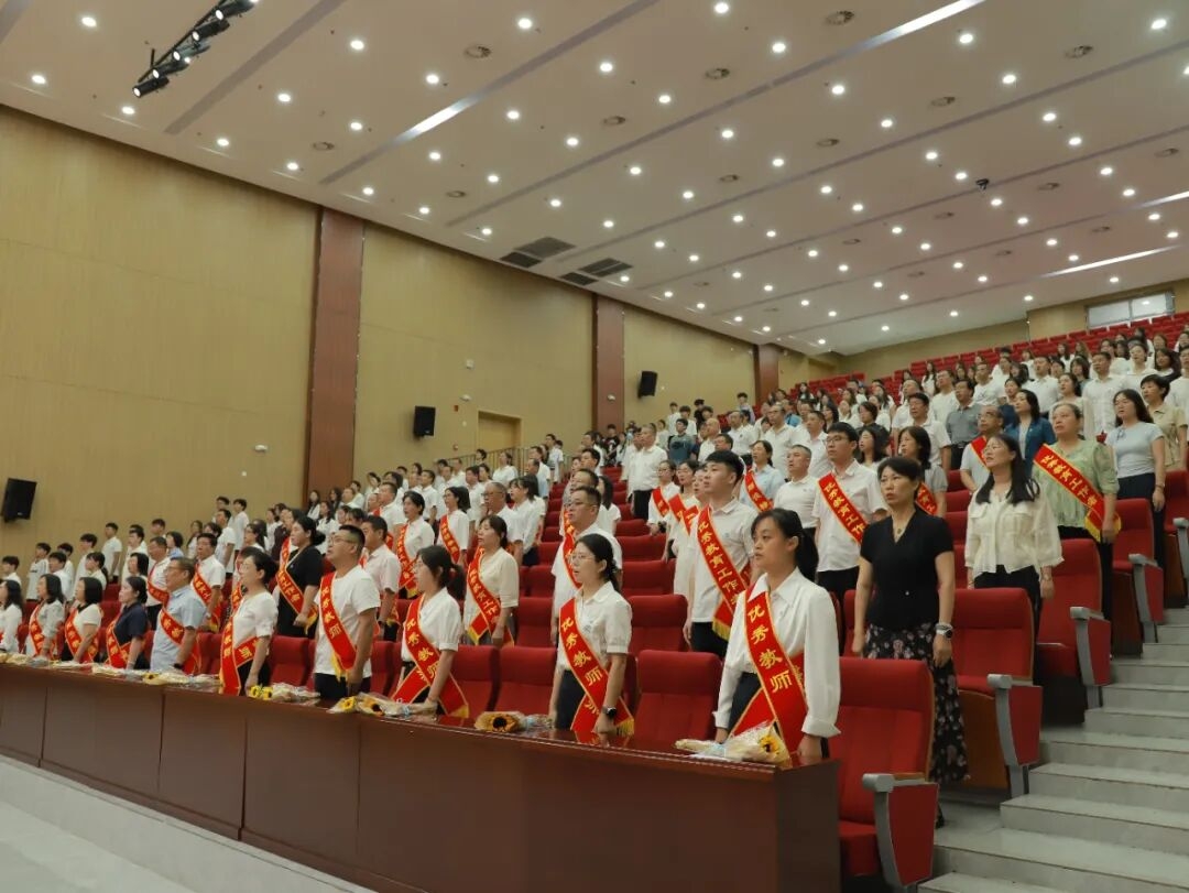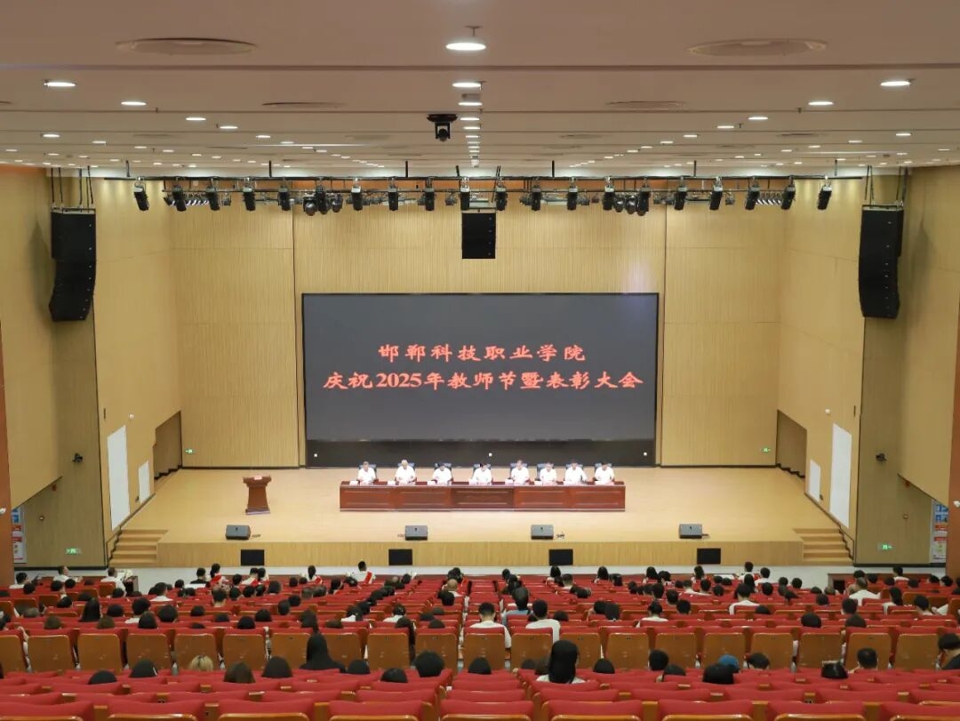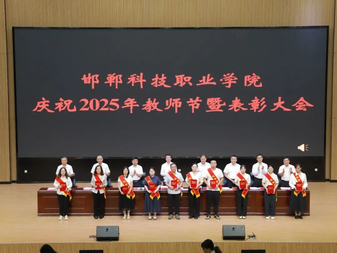 9月10日,邯郸科技职业学院庆祝2025年教师节暨表彰大会在邯郸职教城国际学术交流中心一楼报告厅举行。大会以“以教育家精神铸魂强师 谱写教育强国建设华章”为主题,集中展现学院教师队伍立德树人、奋发有为精神风貌,弘扬尊师重教传统,凝聚育人育才力量。学院党委副书记、院长李鹏丽出席并讲话,党委委员、副书记刘陆冰主持,党委领导班子成员出席大会。