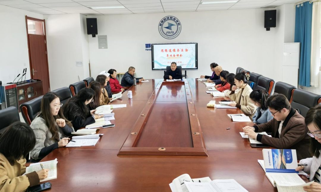 会上,马克思主义学院院长领学了《教育部办公厅关于开展2025—2026学年高校思政课课堂教学提升行动的通知》,明晰了新时代思政课改革创新的方向与重点。 本次备课会聚焦课程核心章节,主备教师前期准备扎实细致。与会教师结合职业院校学生特点和个人教学实践,围绕教学目标、内容重构、重难点突破、案例选用、教学方法等展开了热烈研讨,提出了诸多富有建设性的意见,优化了教学设计方案,为打造“教学蓝本”奠定了坚实基础。 学院全体思想道德与法治课程授课教师参会。