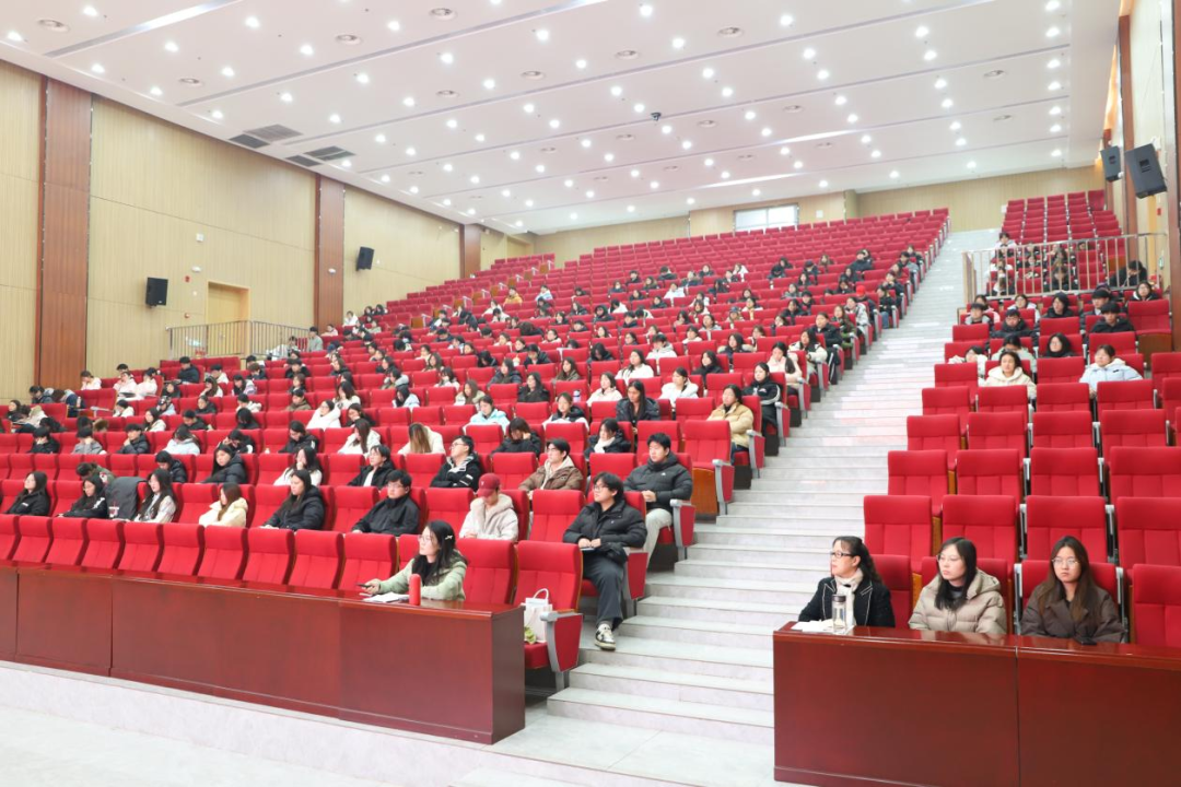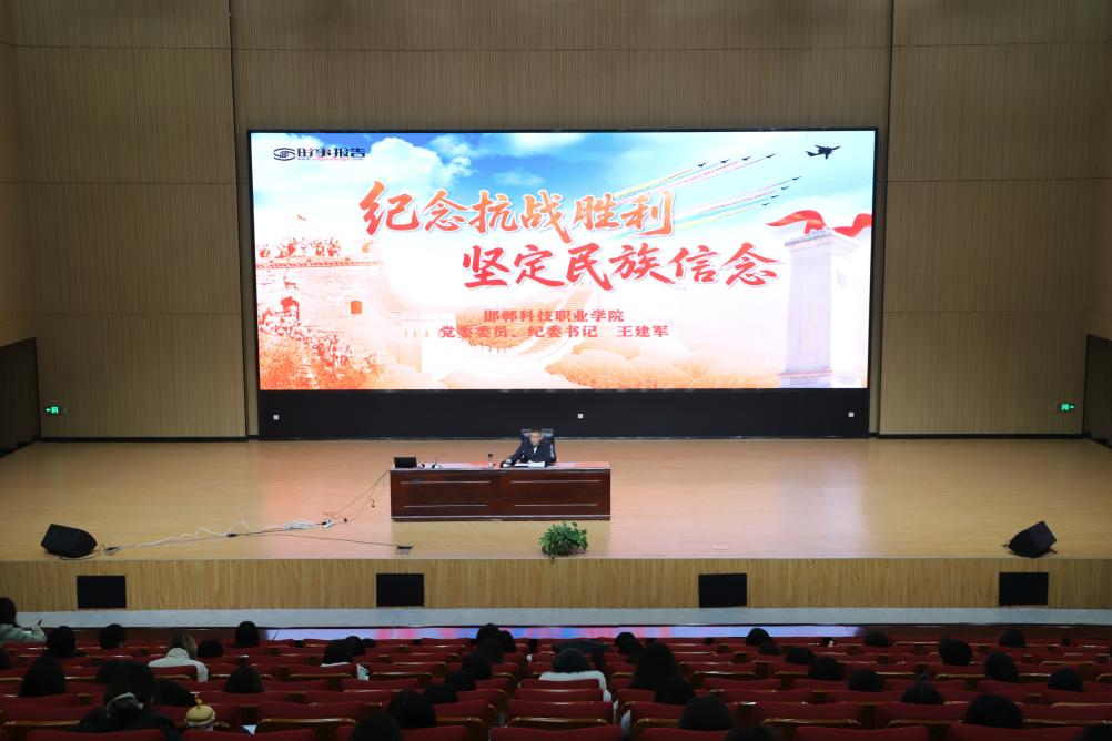 王建军从抗战历史的时代背景切入,结合详实的史料与鲜活的英雄事迹,系统梳理了中国人民抗日战争的艰难历程与伟大胜利。他说,中国人民抗日战争的胜利,是全民族众志成城、浴血奋战的伟大胜利,铭记抗战历史要深刻感悟中华民族自强不息的精神内核,传承红色基因,凝聚奋进力量。结合不同专业特性,王建军对在场的青年学生提出期望。财经系学子应以抗战时期经济战线的前辈为榜样,秉持诚信为本的职业操守,助力经济发展;医卫系学子要传承奉献精神,锤炼精湛医术,守护人民健康;计算机系学子需发扬攻坚克难的抗战意志,深耕技术创新,为国家数字化建设筑牢安全屏障。