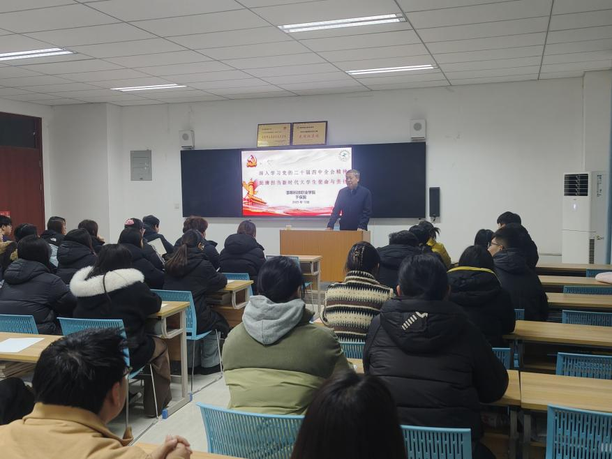 于保国以党的二十届四中全会精神为核心,系统阐释了全会的重大意义与战略部署。结合全会审议通过的“十五五”规划建议,他说,加快高水平科技自立自强、发展新质生产力是推动高质量发展的核心任务。青年学子要深刻把握国家战略导向,增强历史主动性与时代责任感。立足材料专业学科特点,于保国希望学生筑牢思想根基,坚定理想信念,要持续深化对全会精神的学习领悟,让青春理想始终与党和人民同向同行。锤炼过硬本领,深耕专业领域,在动手操作中提升解决实际问题的能力,努力成为兼具专业素养和创新能力的技术技能人才。涵养家国情怀,践行社会责任,把个人理想融入国家发展大局,用所学知识为区域经济社会发展贡献青春力量。