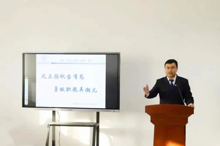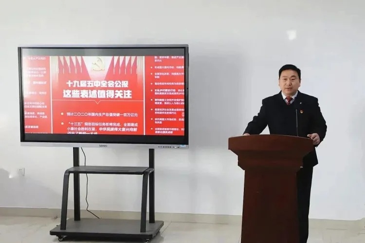 党委副书记霍自祥在讲话中指出,社会发展需要人才,职业教育是培养为社会直接创造价值的高素质劳动者和技术技能人才的教育,职业教育的春天已经到来,我们要对学院发展有绝对的信心和决心。创新是引领发展的第一动力,我们要以创新为引领,促进学院高质量发展。他强调,要始终坚持党的领导,充分发挥各党支部的战斗堡垒和党员的先锋模范作用。广大党员干部要将学习贯彻党的十九届五中全会精神作为当前一项重要政治任务,切实把思想和行动统一到全会精神上来,全方位、多角度解读好全会精神, 在全院掀起学习贯彻十九届五中全会的精神热潮。