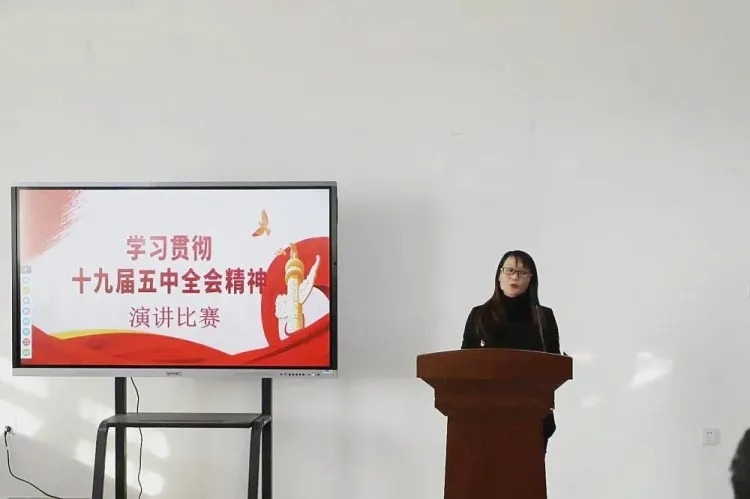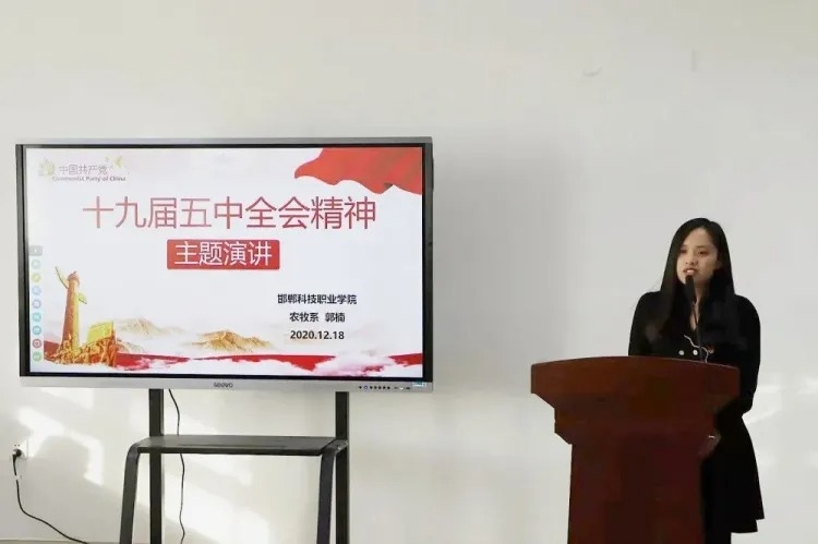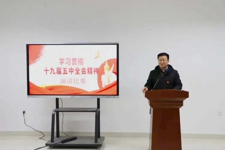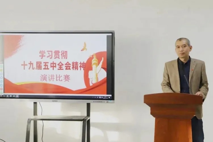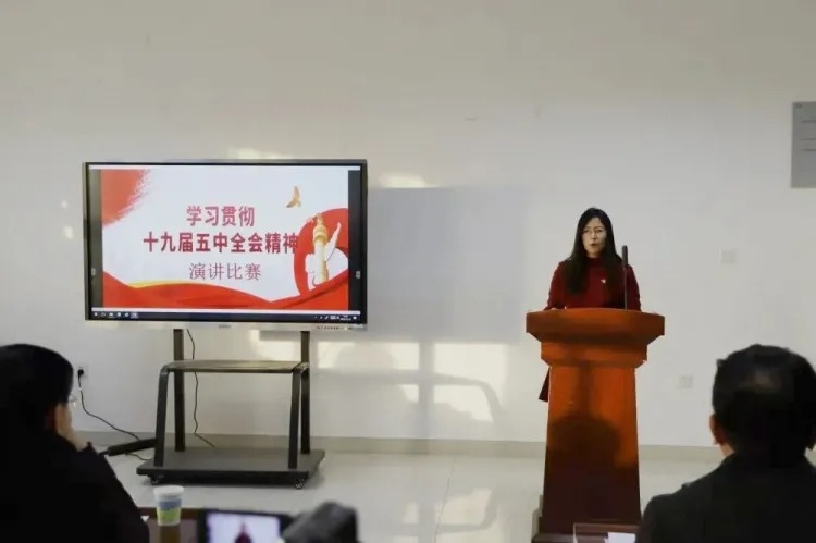 12月18日下午,学院在教学楼D1-202会议室举办 “学习贯彻十九届五中全会精神”演讲比赛。党委副书记霍自祥及各党支部党员代表共计60余人参加了活动。